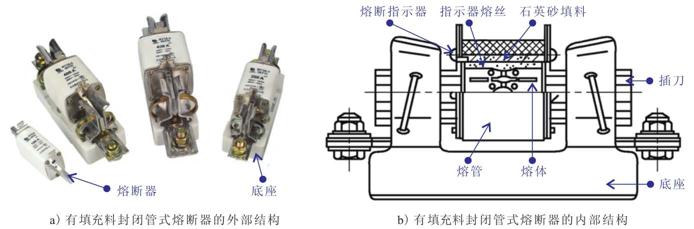 有填充料封闭管式熔断器(RT、RS、NT和NGT系列)的断流能力比无填料封闭管式熔断器大,主要应用于AC 380V、额定电流1000A以内的电力网络和成套配电装置中。