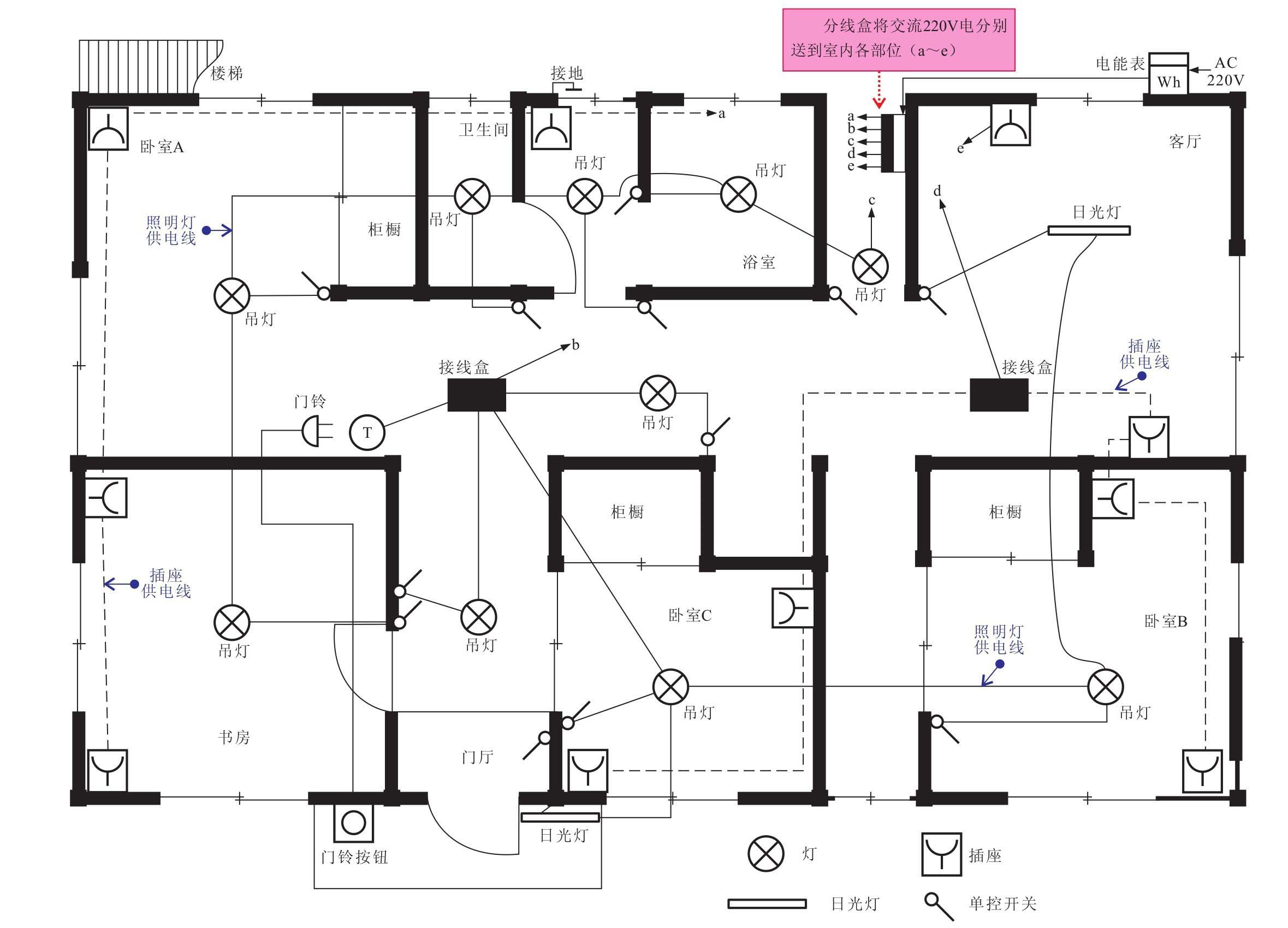 图3-29 典型室内的电工施工图