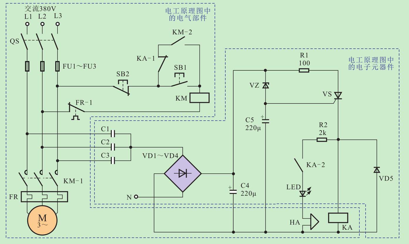 图3-26 典型电气部件与电子元器件构成的电工原理图