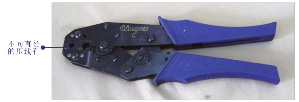 压线钳在电工操作中主要是用于线缆与连接头的加工。压线钳根据压接的连接件的大小不同,内置的压接孔也有所不同,如图4-9所示。