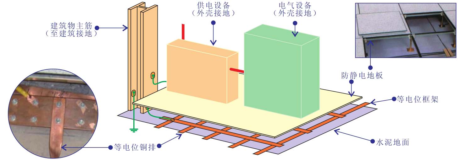 图5-30所示为设备接地方式。设备接地是指采用外壳接地的处理方式,将设备外壳上聚集的静电电荷释放到大地中,从而实现静电防护。
