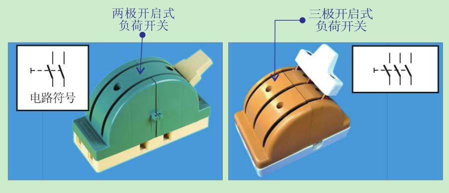 图2-2 两极开启式负荷开关和三极开启式负荷开关