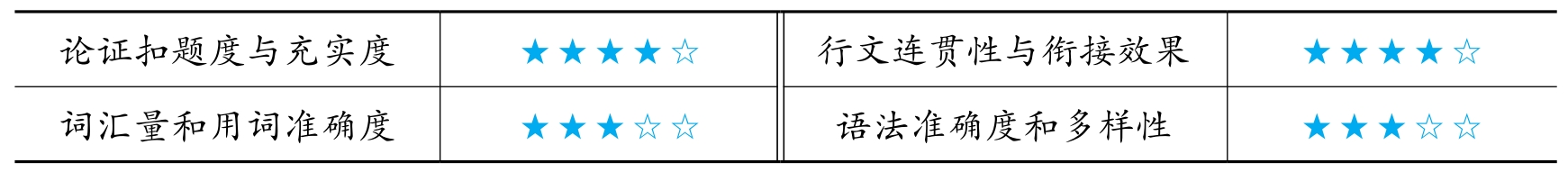 一篇十分中规中矩的文章,没有很强的表现欲,ideas也并不算新颖,但说理还是清楚的(本文不算长,但好处是基本没有废话,ideas读起来还是比较充实的),行文过程整体也比较连贯,没有6分作文那样时常出现的“磕磕绊绊”感。