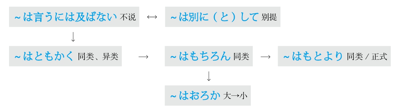 区别: 「~はもちろん」的前后是同类事项;「~はともかく」的前后同类、异类事项均可