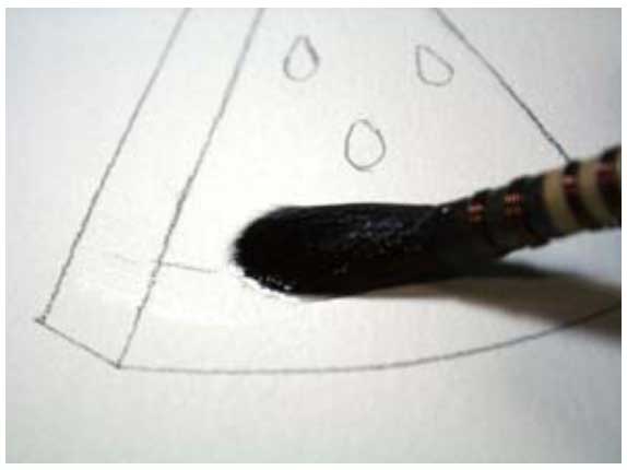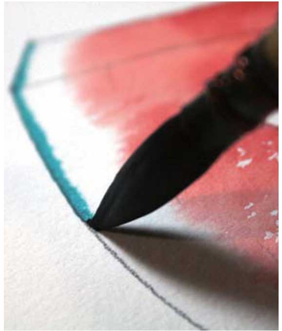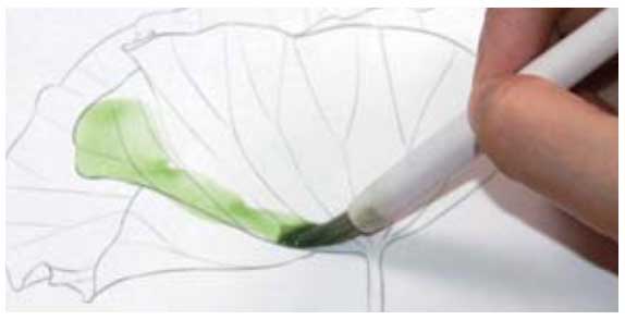 01 首先用干净的笔取清水将要画的色块打湿。