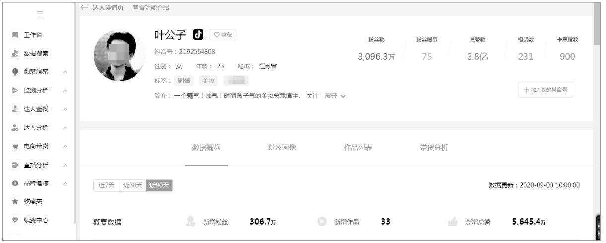 单击榜单中某个达人的名称,即可进入该达人账号分析详情页,如图2-13所示。