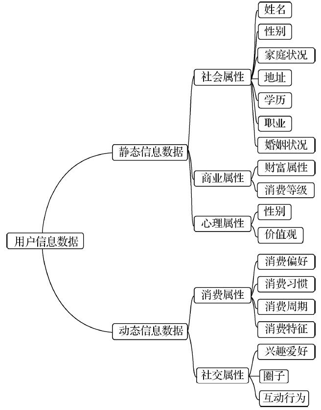 确定短视频用户画像的第一步是对用户信息数据进行分类。用户信息数据分为静态信息数据和动态信息数据两大类。其中,静态信息数据是构成用户画像的基本框架,展现的是用户的固有属性,一般包含社会属性、商业属性、心理属性等信息。这些信息一般无法穷尽,只要选取符合需求的即可。动态信息数据是指用户的网络行为数据,如消费属性、社交属性等。在选择这类信息时,也要符合短视频的内容定位。