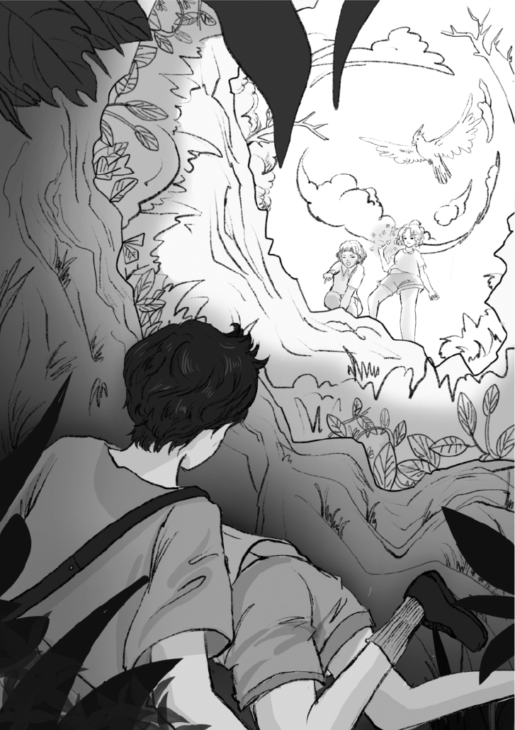 两个男孩离开了很久,还没有回来。露西安与黛娜开始变得有些不耐烦,然后又有些惊慌。他们出事了吗?她们一边从那个海藻叶子之间的洞往下看,一边侧耳倾听,却没听到任何声音。