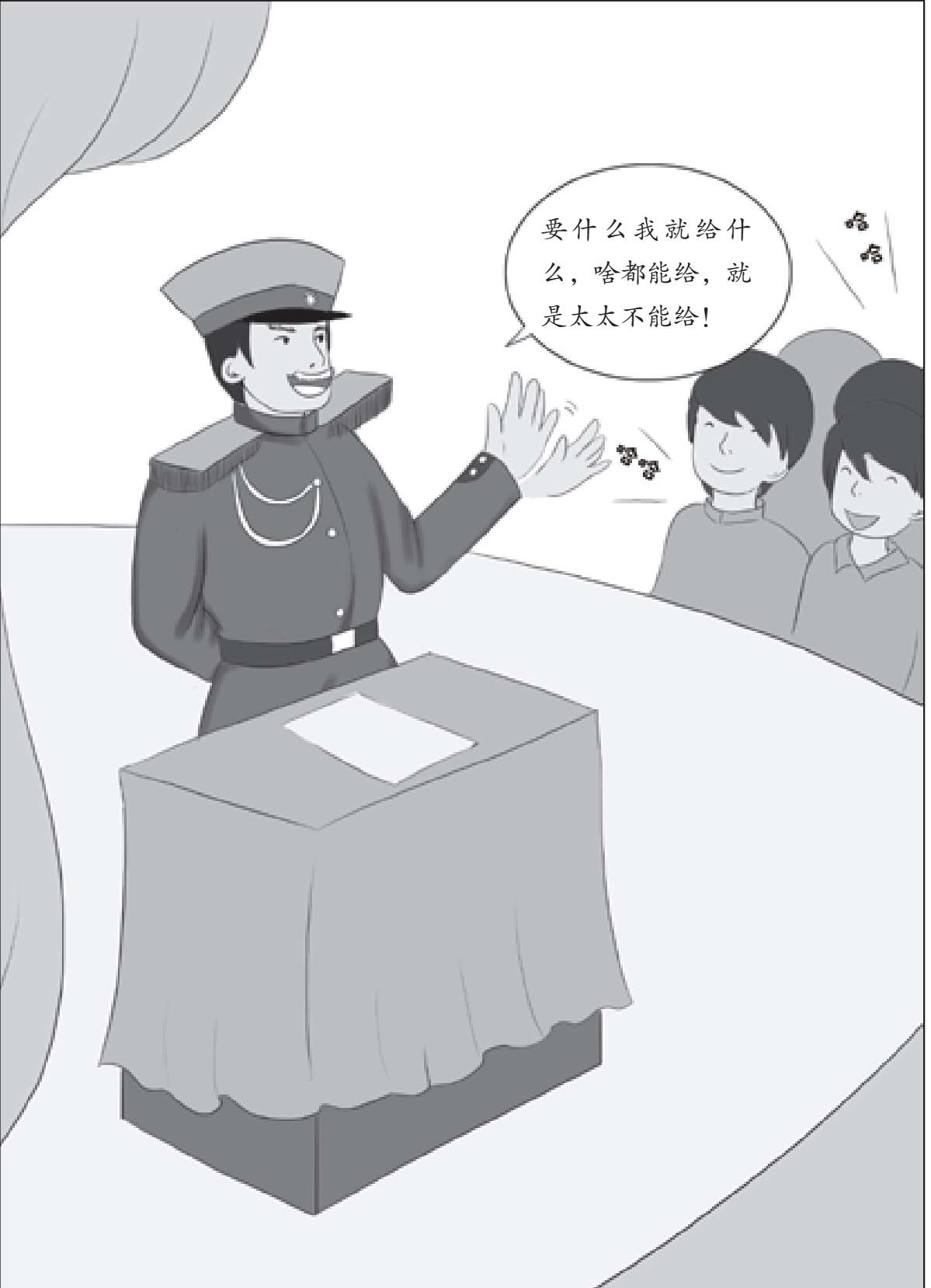 张作霖在讲武堂学员毕业典礼上发言:“只要你们踏踏实实地努力,我让你们当连长、团长。有功我张作霖必赏。要什么我就给什么。但是,有一样我张作霖可不能给。”“啥都能给,就是太太不能给!”