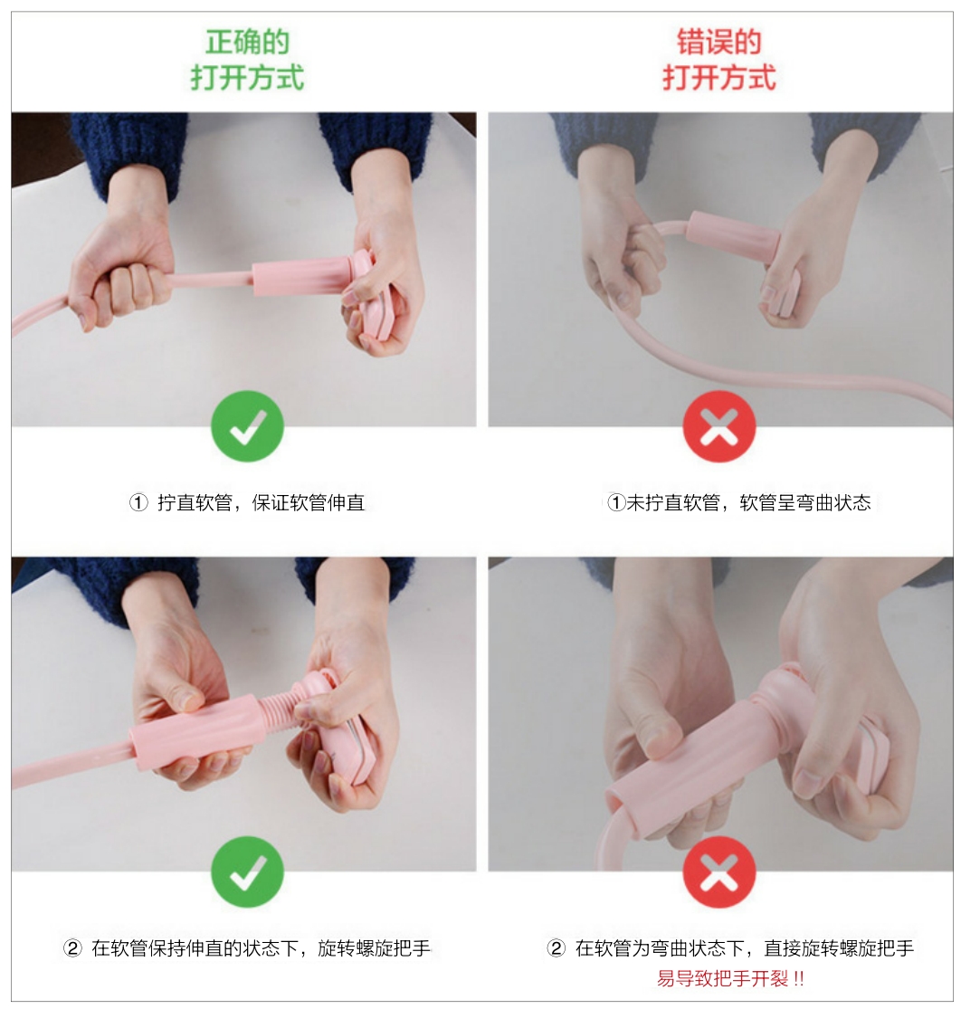 正确的支架打开方式:拧直软管(支架杆),在软管伸直的状态下,旋转螺旋把手,如图2-13所示。