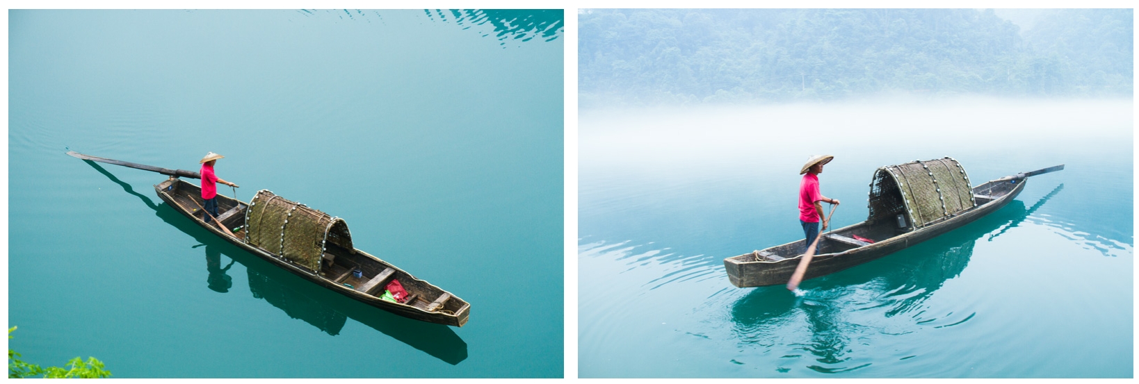 图3-1所示为渔夫划船的一段短视频,这段短视频采用斜线构图拍摄。渔夫划船的方向与画面对角线平行,具有一种动感的美,同时斜线的纵向延伸可加强画面深远的透视效果,给人以独特的视觉效果。