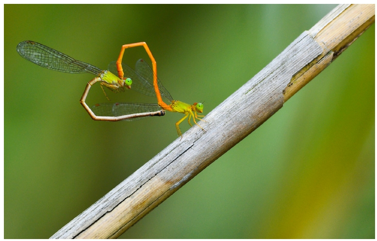 如图3-12所示,画面中以树枝为对角线,大家的视觉很容易被吸引到树枝上的两只蜻蜓身上,汇聚了观众的视觉焦点。