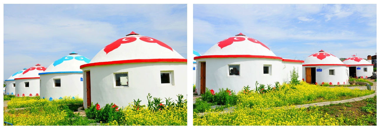 如图3-15所示,这是在内蒙古拍摄的风光短视频画面,画面中的房屋就是以透视构图的手法拍摄的,画面具有一种极强的透视感,近处的房屋大,远处的房屋小,极具视觉冲击力,同时画面的立体感非常强烈。