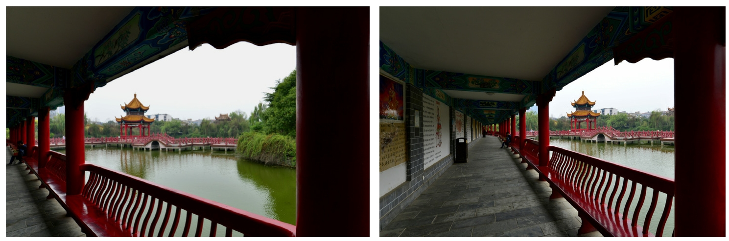 图3-13所示的公园风景短视频,都是采用框式构图的手法拍摄的,利用四周的建筑作为框架,将主体放在框中合适位置。框式构图有助于主体与前景很好地结合在一起,并使主体更加突出。