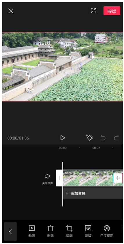 按钮,确认裁剪,即可查看裁剪后的视频,效果如图3-23所示。点击右上角的“导出”按钮,即可导出视频。