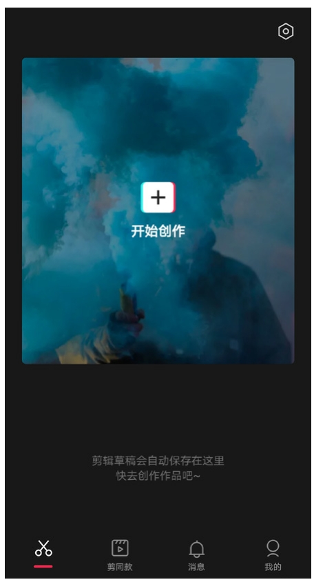 01 在应用商店中下载并安装剪映App,打开剪映App工作界面,点击中间的“开始创作”按钮,如图3-16所示。