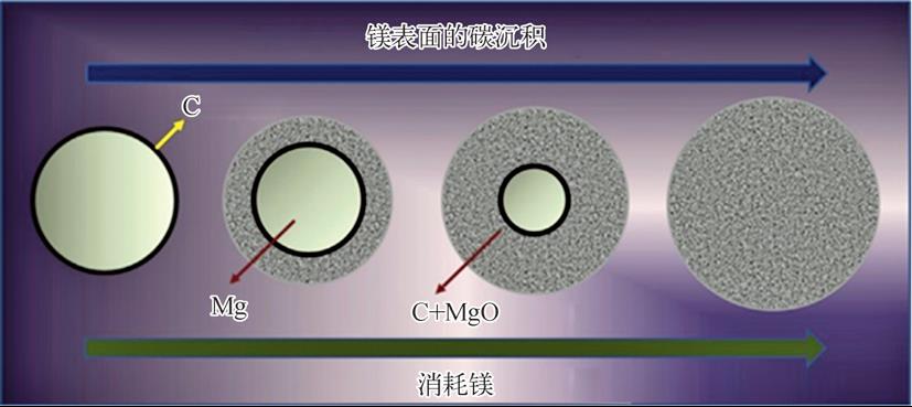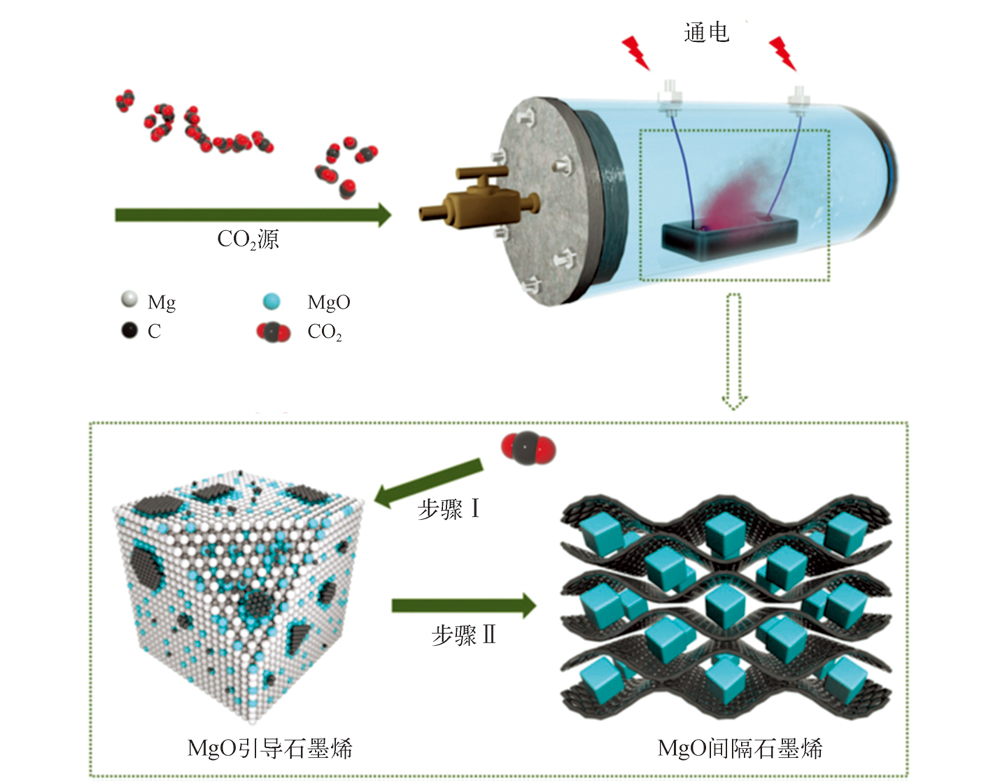 2017年,Li等采用一种绿色、可控、超快速的自蔓延高温合成(Self-propagation High-temperature Synthesis, SHS)工艺,将CO 2 转化为高品质的石墨烯。SHS本质上是一种用能量将一部分样品激发的放热反应,强放热反应释放的热量产生燃烧波,并自发地穿过剩余材料。与常规方法相比,SHS的主要特点是整个反应时间极短,通常反应时间为数秒,其释放的大量热量为高速燃烧波(20cm·s -1 )提供了足够的驱动力。由于在放热反应的高温(5000 K)下,反应组分存在自净作用,SHS产物通常具有更高的纯度和更好的结晶度。SHS的另一个重要特征是可实现材料的大规模制备。因此,SHS的这些特性为利用CO 2 生产石墨烯提供了借鉴。