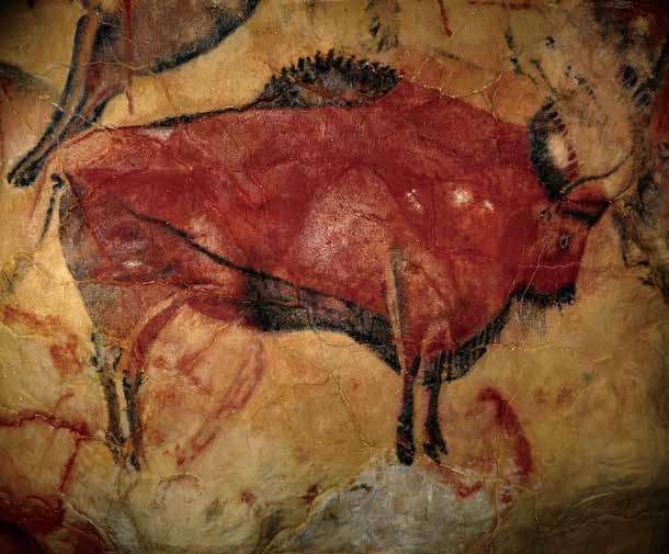 人类出走非洲后,在一路上都留下了文明的痕迹,其中最著名之一是已有18500年历史的阿尔塔米拉洞(Cueva de Altramira)壁画。这幅壁画达到的艺术造诣高度惊人,极其富有创造性,以至于毕加索在参观了这幅壁画之后曾经慨叹道:“我们现在所有的人都无法画出这种水平来。”他认为和这幅壁画相比,人类之后所有的作品都是退步。