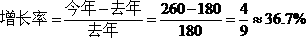 【例1】今年进口260亿元,去年进口180亿元,今年比去年增长百分之几?