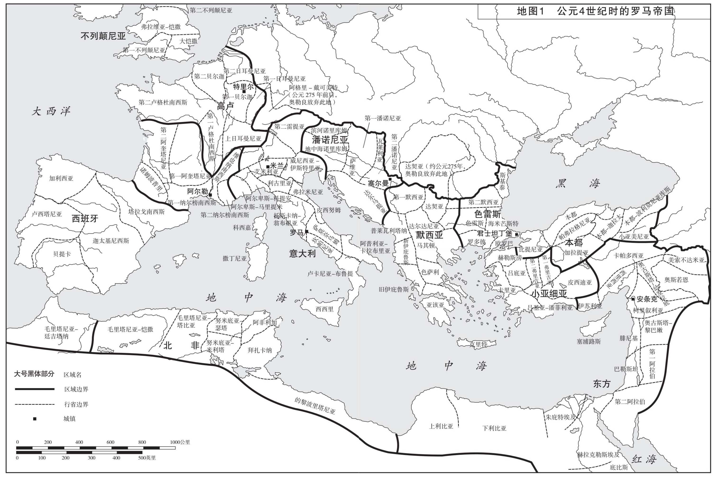 一起分疆而治。到公元4世纪20年代初,皇帝更替,但是四帝共治的模式一直沿用下来。就这样,帝国后期经历了各种形式的分权而治。但在公元4世纪基本上都是两位皇帝:通常是一位统治帝国西部,一位统治帝国东部。到公元5世纪,这种分疆而治的格局基本定型。