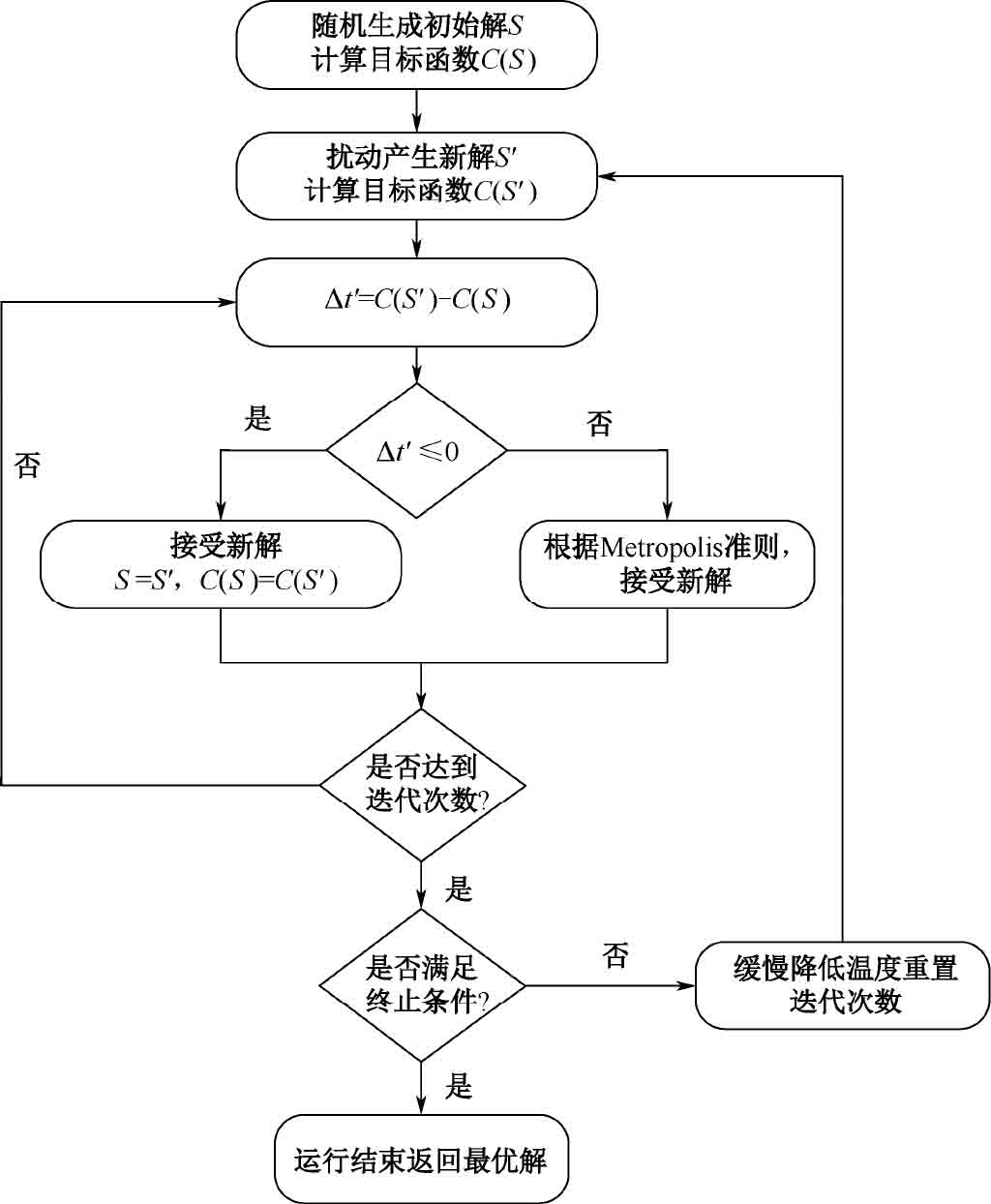 模拟退火算法可以分解为解空间、目标函数和初始解三部分。其基本思路流程如下。