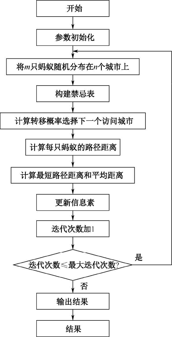 将蚁群算法应用于解决优化问题的基本思路是:用蚂蚁的行走路径表示待优化问题的可行解,整个蚂蚁群体的所有路径构成待优化问题的解空间。路径较短的蚂蚁释放的信息素量较多,随着时间的推进,较短路径上累积的信息素浓度逐渐增高,选择该路径的蚂蚁数量也越来越多。最终,整个蚁群会在正反馈的作用下集中到最佳的路径上,此时对应的便是待优化问题的最优解。
