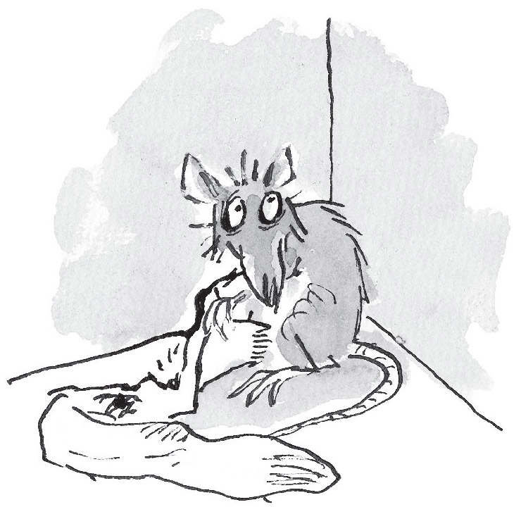 刚开始的时候,她只是看到门旁的角落里有一个小小的阴影。她从床上爬起来,蹑手蹑脚地走上前去想看个究竟。那东西很小,很脏,还有点味儿。她往前走的时候,脏兮兮的木地板被她踩得嘎吱作响。