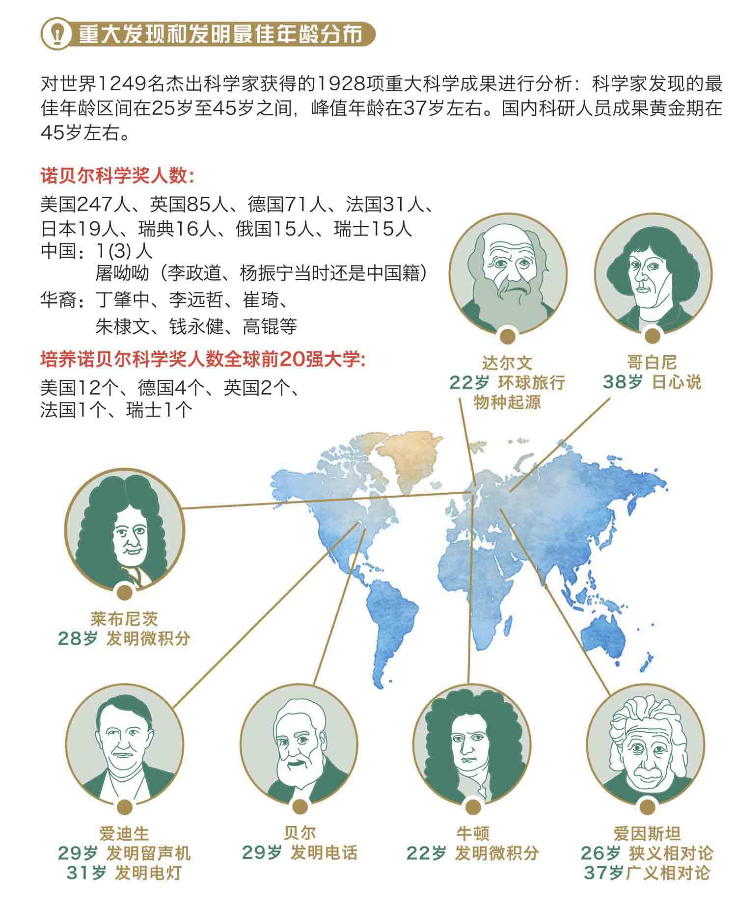 中国工程院2019年报告《建设科学强国,努力成为世界主要科学中心》(图2-17)指出,许多科学家的重要发现和发明,都产生于风华正茂、思想最敏捷的青年时期。这提示我们,在今天的商业社会,对科学家、发明家、实业家、能工巧匠的精神表彰或物质鼓励是有深远意义的,而恰当的物质保障及精神呵护是在为创新人才创造可生存的空间。