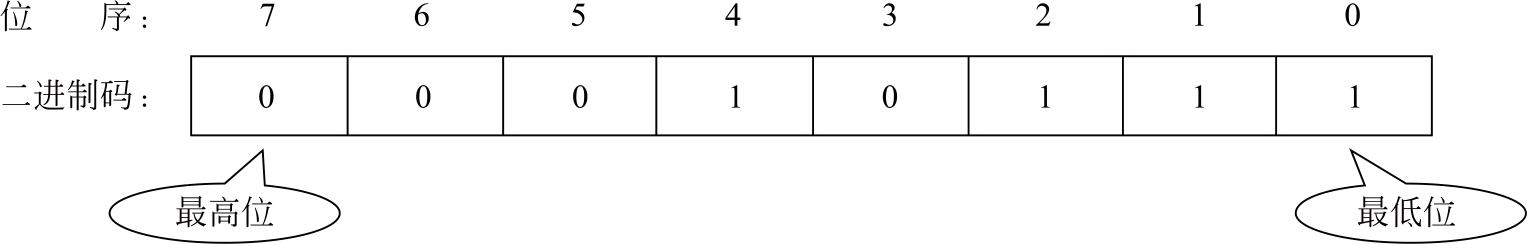 对于十进制整数23,转换成对应的二进制码为10111,二进制码里的每个“0”或“1”称为一个二进制位(Bit),简称位。在两个位中左为高位,右为低位。