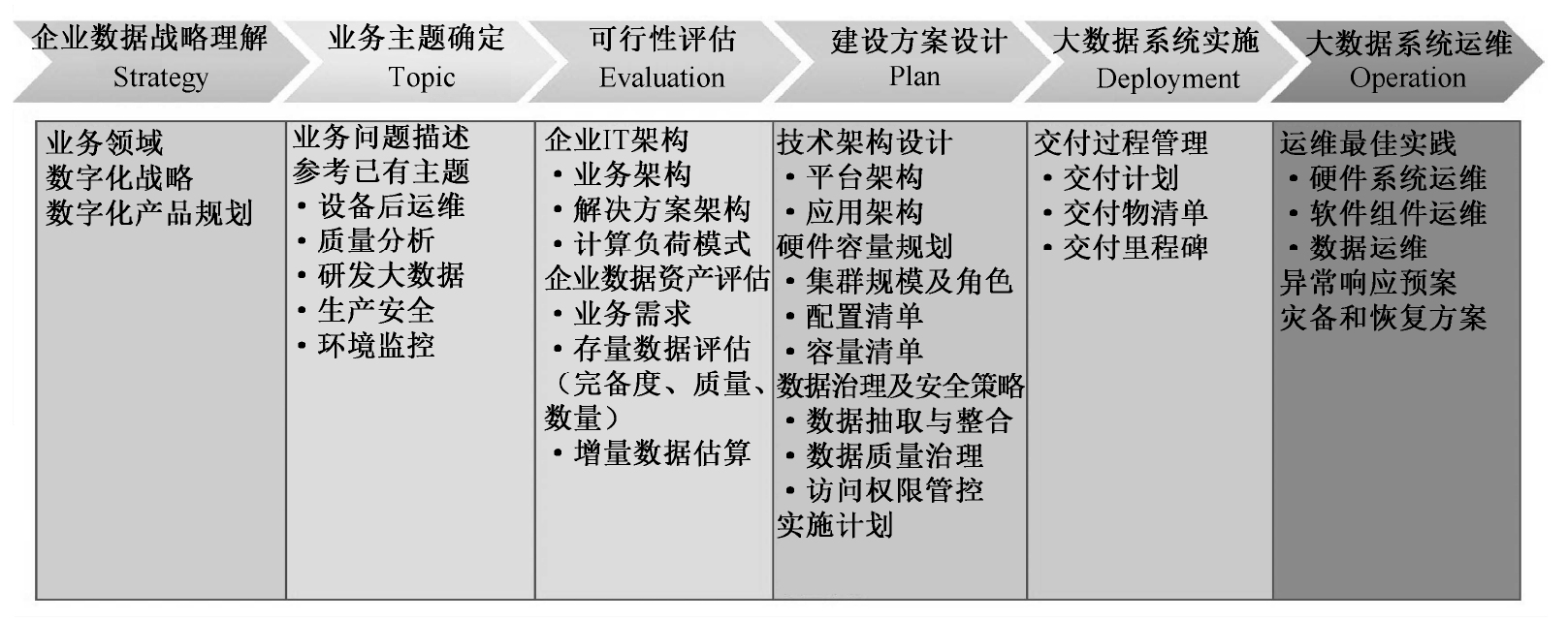 除以上共性挑战之外,单个制造业企业在推进工业大数据的发展时,还会面临管理模式转变、人才短缺、短期成效与长效机制矛盾等方面的挑战,这就需要在大数据规划与实施过程中有一个系统而有效的方法论来进行指导。