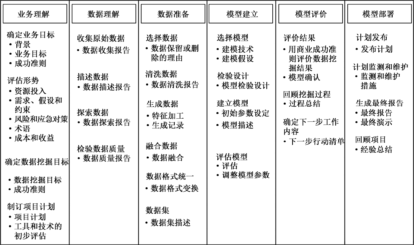 图3-2 CRISP-DM方法论每个阶段的执行内容