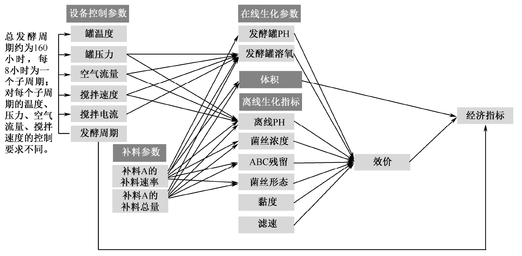 模型的表现形式多样,生物发酵罐控制流程图如图3-7所示,直观的表示更易于沟通。①对于微观的物理、化学、生物过程来说,动力学方程或因果关系模型可以更好地刻画主要因素及其关系。图3-7中包括输入量(可控量、外生变量)、状态量(可测、不可测)和目标量;②对于复杂装备,可以描述其组成关系、工作原理,以及各测点间的空间关系;③对于宏观的经营过程或生产、经济问题,描述背后的商业规则(如供需平衡、采购量折扣等)、基本规律(如季节模式、气温对燃气需求的影响等)和行业常识。天然气用量的驱动因素模型如图3-8所示。