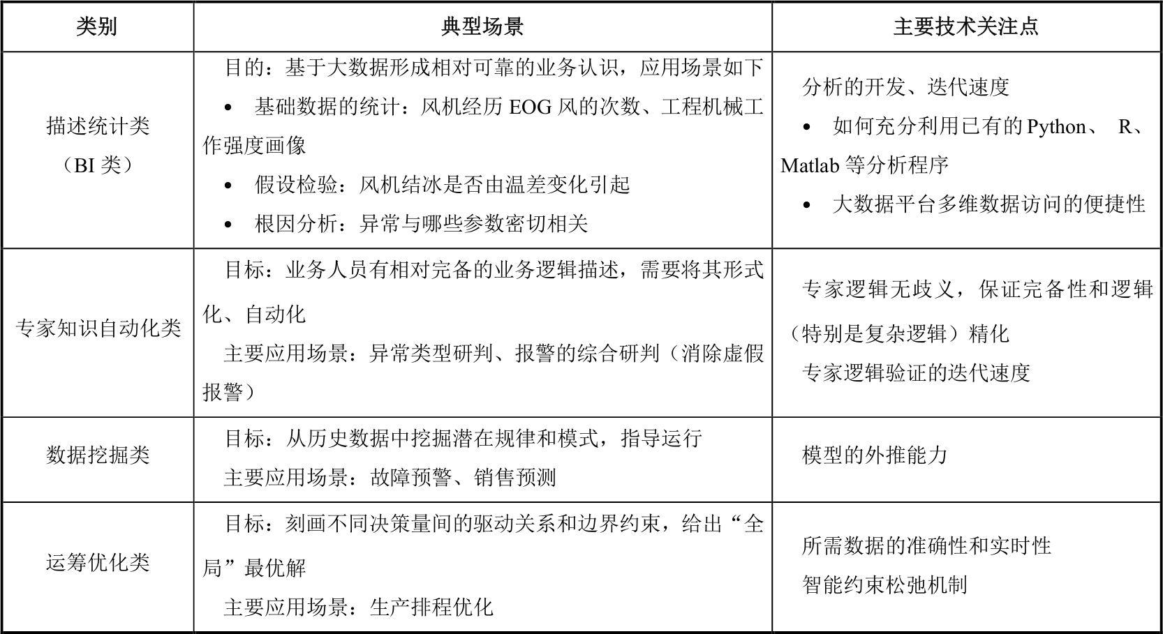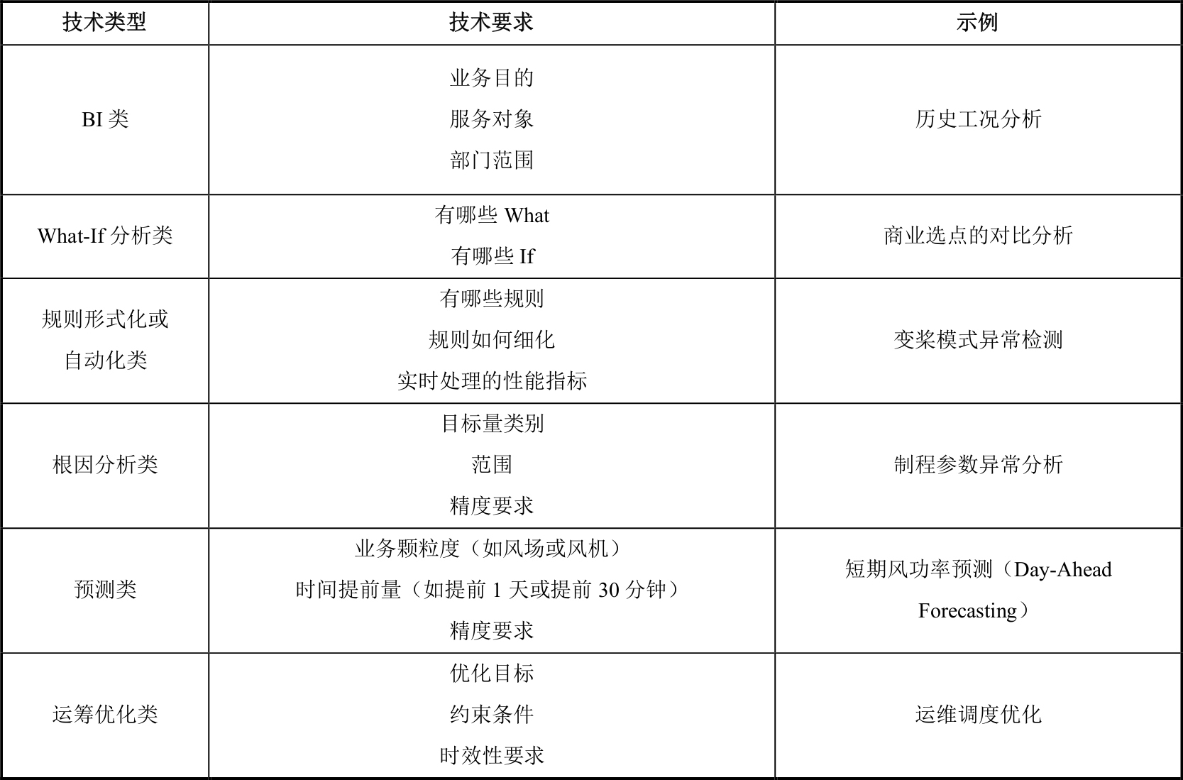 另外,业务用例的分解也可以帮助大家理性地思考业务问题,避免人为“创造”技术挑战,业务用例的分解示例如图3-11所示。很多原来看起来属于“故障预测”的业务需求,也许用“故障在线检测”就可以满足,但两者在技术难度上的差别可能很大。例如,风力发电机的结冰预测需要微尺度的天气预报,还需要叶片表面光洁度等信息(否则解释不了平原风场的3台相邻类似风机只有1台结冰而另外2台没有结冰的现象),这样的分析问题堪称世界难题。但风场运维需要在风机严重结冰前采取适当措施,避免在高载荷下的运行对风机造成损害。及时对结冰进行检测和报警也可以满足业务需求。另外,即使能够精准预测结冰事件,在现实中也只有等到中度结冰后才会采取行动。因此,从实操性的角度来看,结冰预测没有太大价值。