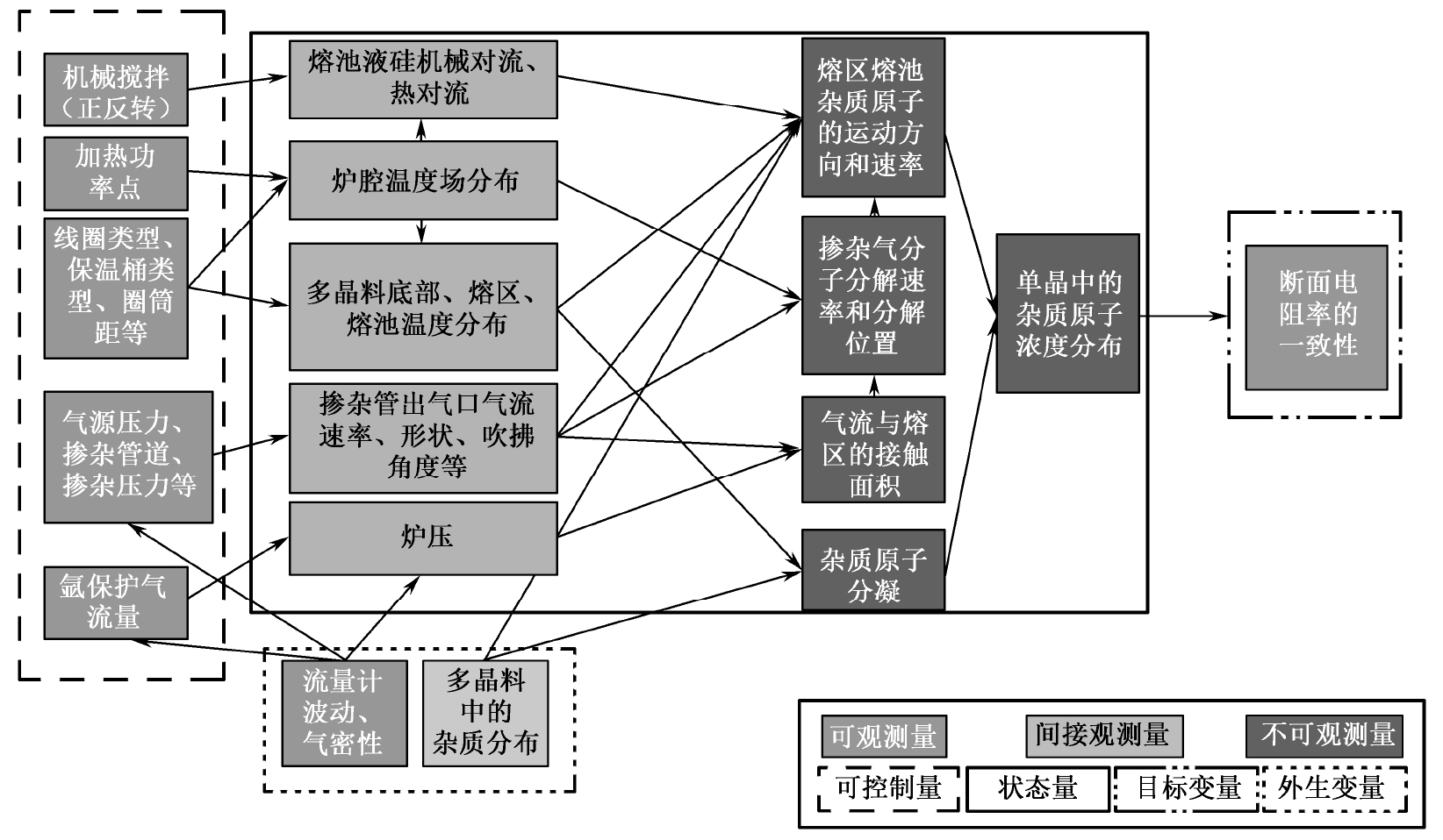 基于因素分类,形成分析问题的因子动力学关系图,系统动力学模型示例(区熔炉)如图3-9所示。对于外生变量(特别是不可观测量)来说,虽然我们无法直接对其进行优化,但其提醒了我们分析模型的适用前提。