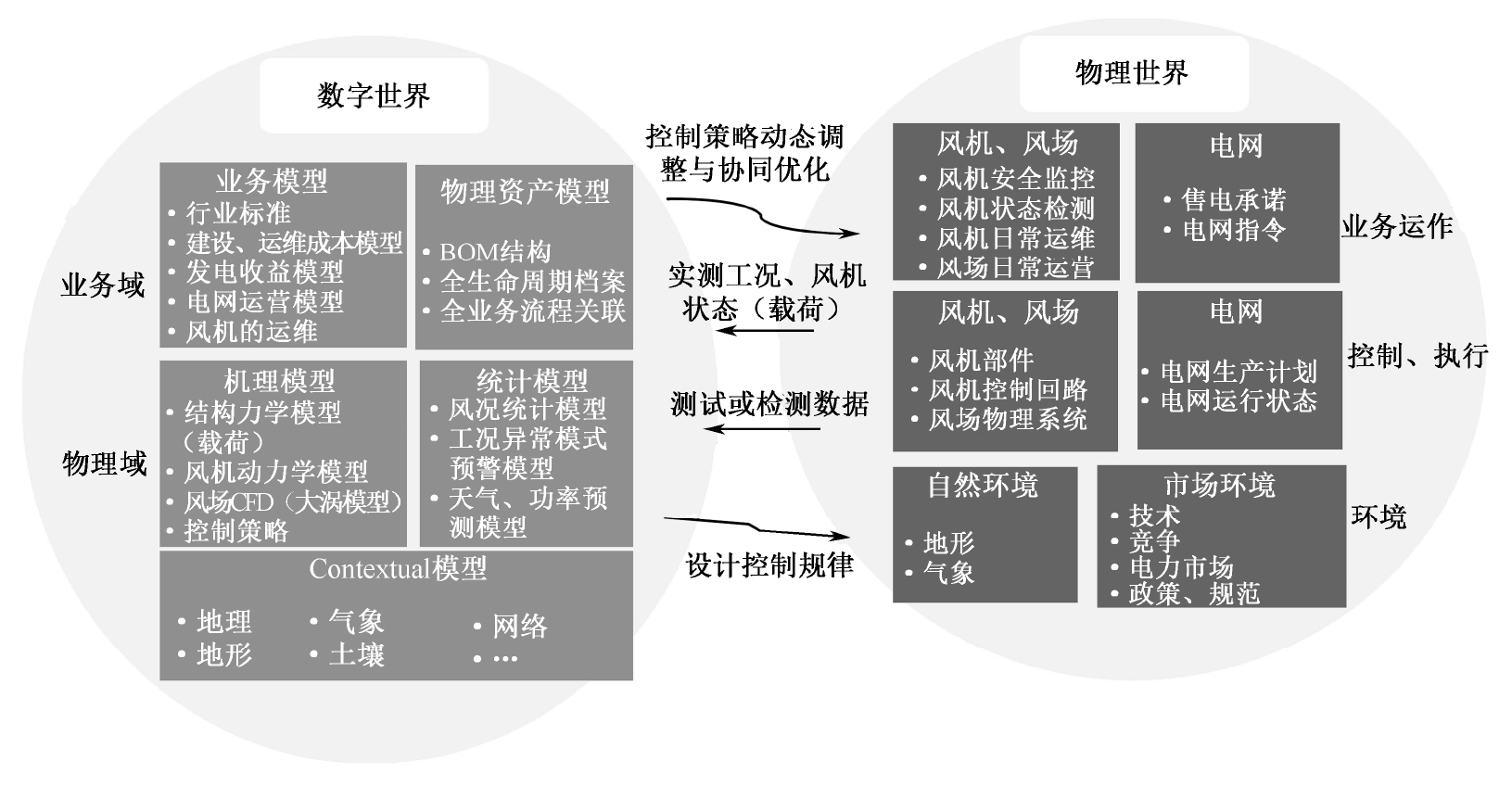 (1)在设备后运维中,BOM(Bill of Material)是一个了解上下文的好起点。例如,在风电装备制造业,需要了解风机的工作机理、风电场的业务运作机制、设备的关键动作状态(如偏航对风、解缆、降功率运行、保养、故障停机等)。只有基于这些信息,才可能形成数字世界对物理世界的相对完整的刻画,如图3-6所示。