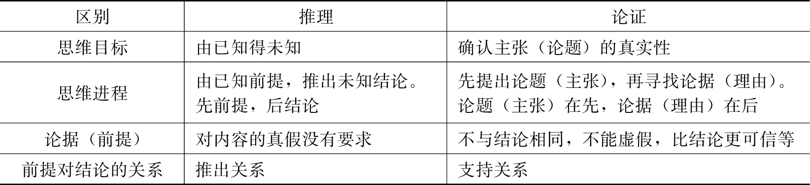 推理强调的是逻辑关系。论证除对逻辑关系的关注外,同时要关注内容和主张。