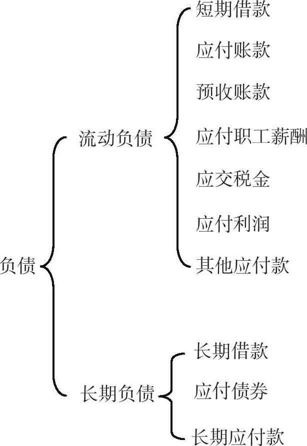 目前我国会计报表中涉及的负债的具体分类如图2-16所示。