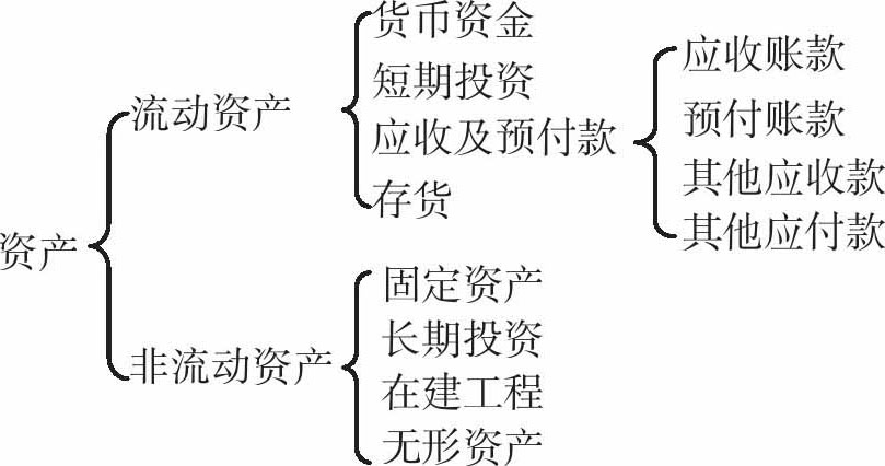 目前我国会计报表中涉及的资产的具体分类如图2-14所示。