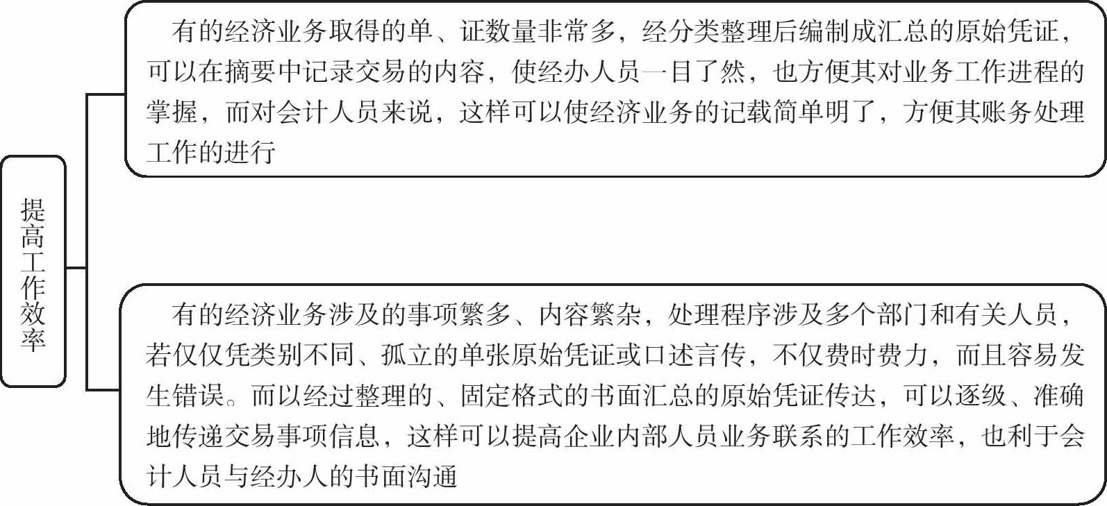 原始凭证是会计工作的起点,是账簿组织系统的第一要素,而汇总的原始凭证是企业为实施内部控制,推动业务进行,增进工作效率以及强化分工合作的良好工具。其在企业管理和会计工作中均发挥着重要作用,具体表现在以下几个方面。