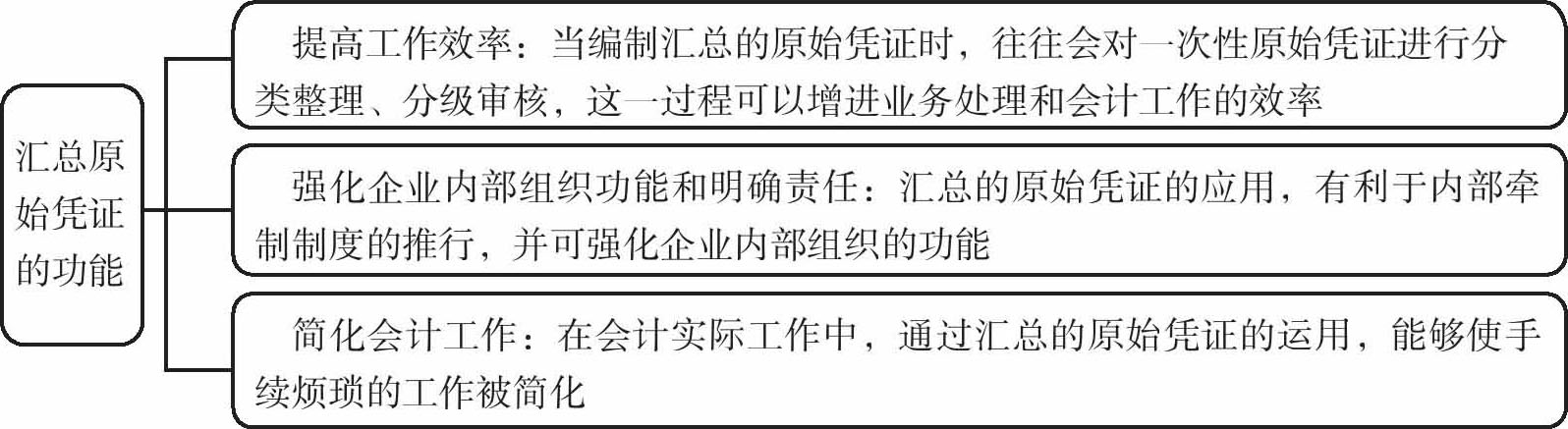 汇总原始凭证作为企业的一种内部凭证,往往有固定的格式和填列项目。它以外来的原始凭证和一次性原始凭证作为依据,通过对一次性原始凭证的整理、分类和适当综合,可以直观地揭示企业交易事项的内容、性质、数量及金额,也方便企业内部不同部门的传递,使各部门经办人员可以便捷地向会计部门报告会计信息。