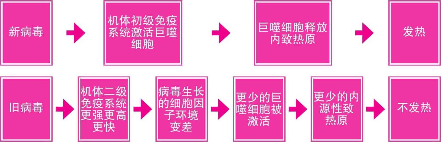 简单来说,是因为宝宝经历的感冒次数少,暴露于不同的病毒机会较少。成年人面对普通感冒不易发烧,但面对新型致病原如SARS就发烧明显也是这个道理。我们把宝宝第一次感冒视为新病毒,把第二次(包括第二次以上)感冒视为旧病毒,看看病毒和机体免疫系统的“战斗过程”。