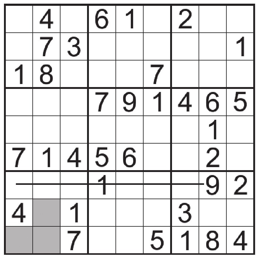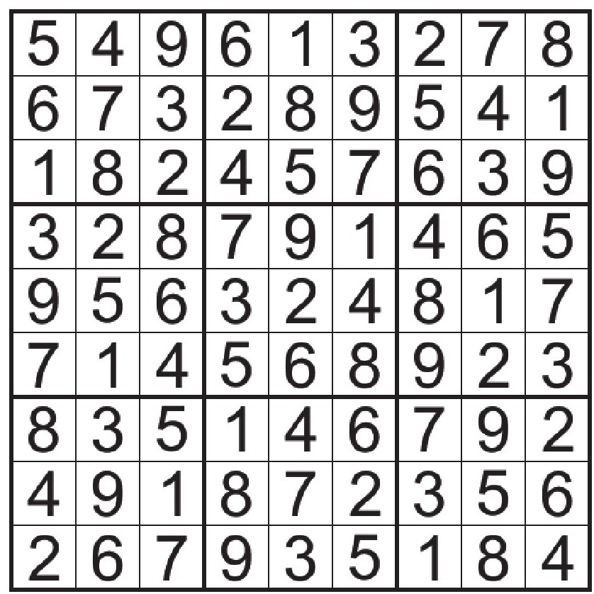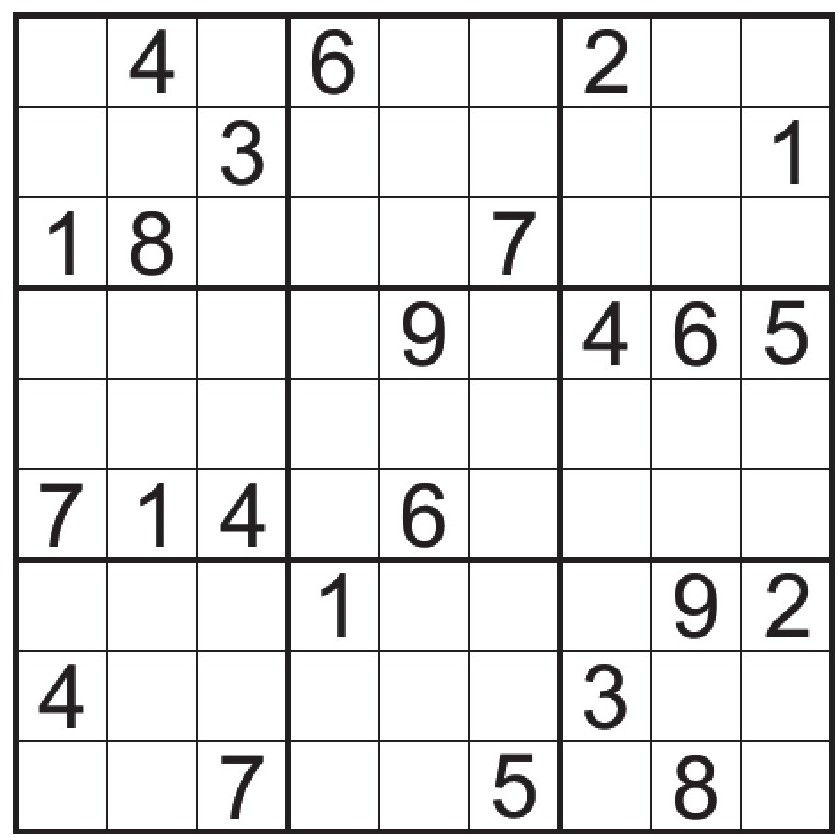 标准数独:填入数字1~9使得每行、每列及宫内数字不重复。题目如下:
