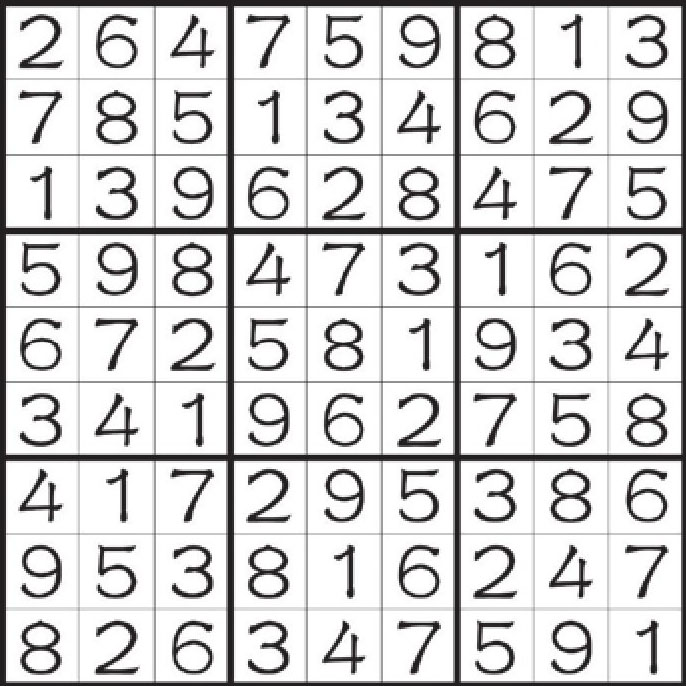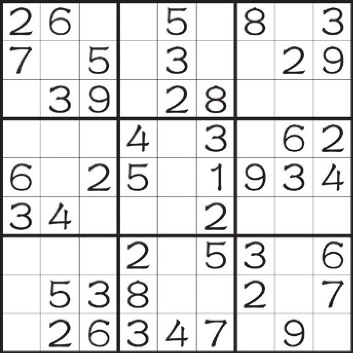 标准数独规则:填入数字1~9,使得行列宫内数字不重复。