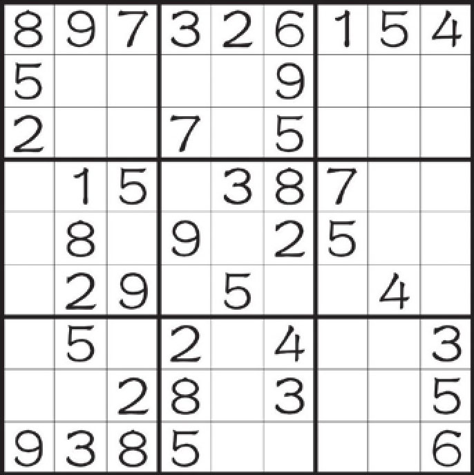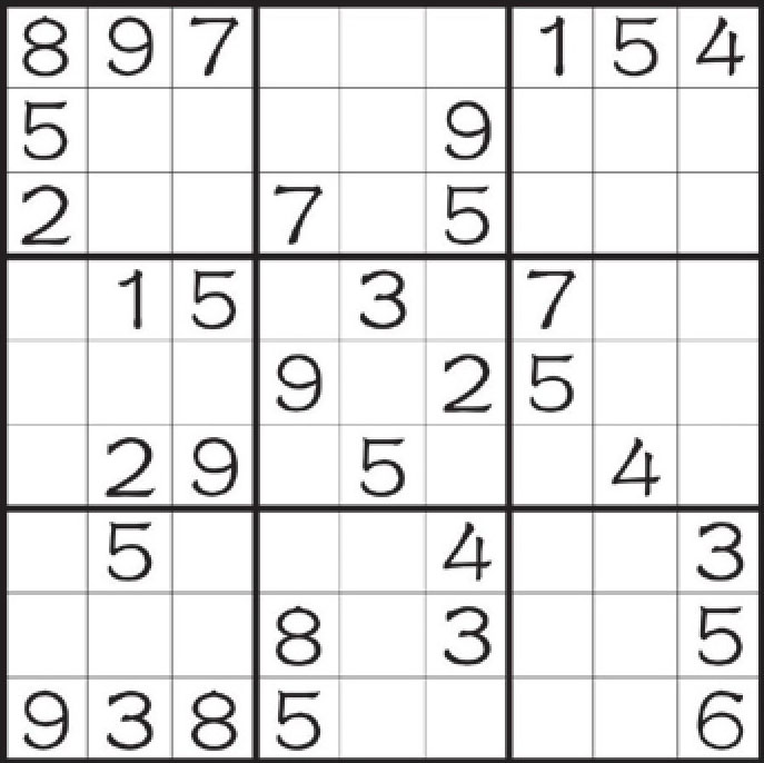 标准数独规则:填入数字1~9,使得行列宫内的数字不重复。