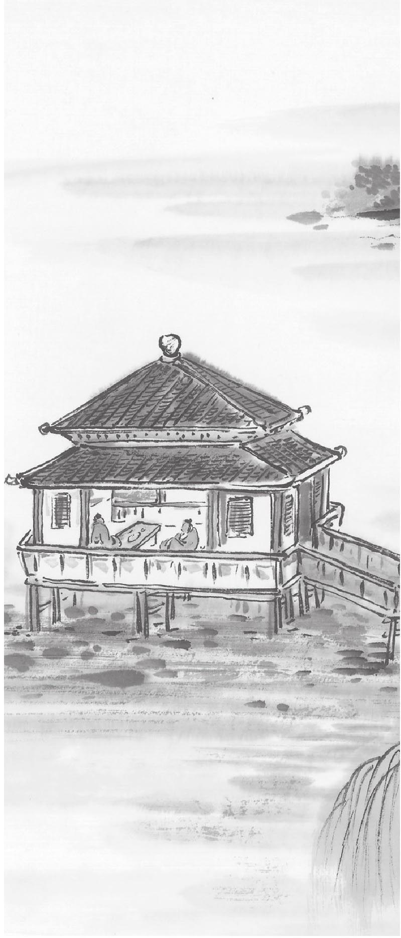 老残出了金泉书院,顺着西城南行。过了城角,仍是一条街市,一直向东。这南门城外好大一条城河,河里泉水湛清,看得河底明明白白。河里的水草都有一丈多长,被那河水流得摇摇摆摆,煞是好看。走着看着,见河岸南面,有几个大长方池子,许多妇女坐在池边石上捣衣。再过去,有一个大池,池南几间草房,走到面前,知是一个茶馆。进了茶馆,靠北窗坐下,就有一个茶房泡了一壶茶来。茶壶都是宜兴壶的样子,却是本地仿照烧的。老残坐定,问茶房道:“听说你们这里有个黑虎泉,可知道在什么地方?”那茶房笑道:“先生,你伏到这窗台上朝外看,不就是黑虎泉吗?”老残果然望外一看,原来就在自己脚底下,有一个石头雕的老虎头,约有二尺余长,倒有尺五六的宽径。从那老虎口中喷出一股泉来,力量很大,从池子这边直冲到池子那面,然后转到两边,流入城河去了。坐了片刻,看那夕阳有渐渐下山的意思,遂付了茶钱,缓步进南门回寓。