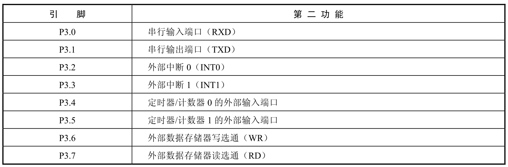 当P3端口工作为普通I/O端口时,第二功能信号线应保持高电平,与非门开通,以维持从锁存器到输出端口的数据输出通路畅通无阻;而使用P3端口的第二功能时,对应的锁存器置高电平,使与非门对第二功能信号的输出是畅通的,从而实现第二功能信号的输出。当P3端口的某个引脚为第二功能信号输入时,在输入通路增设一个缓冲器,输入的第二功能信号即从这个缓冲器的输出端取得,而作为I/O端口的输入端时,取自三态缓冲器的输出端。