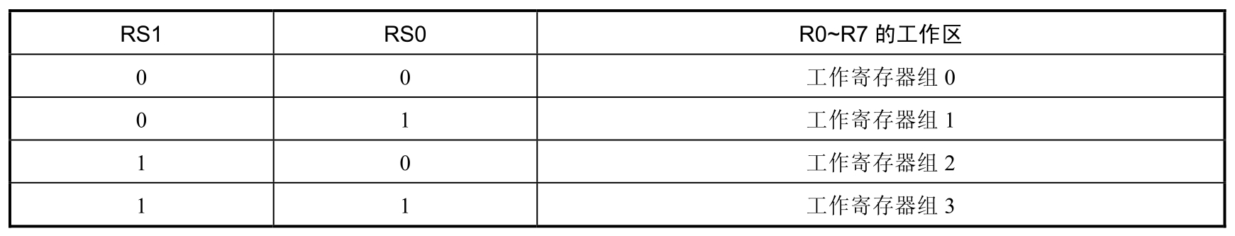 表2-4 RS1、RS0取值与工作寄存器组(R0~R7)的对应关系