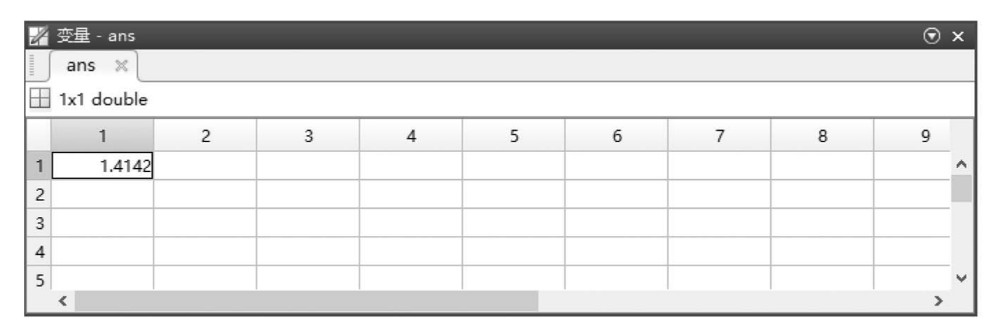 工作区是MATLAB用于存储各种变量和运算结果的内存空间。在命令行窗口中输入的变量、运行文件建立的变量、调用函数返回的计算结果等,都将被存储在工作区中,直到使用了clear命令清除工作区或关闭了MATLAB系统为止。需要注意的是:函数在运行中调用的一些临时变量,不会占用工作区,这些变量在函数运行结束后将被释放。