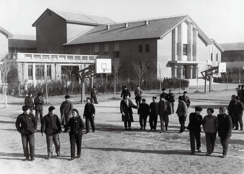 1960年,北京,新建的小剧场。新剧场有明显的苏式风格,为了节省建筑成本,剧场外的篮球场地面还是泥沙地。照片里是刚刚看完表演的人群,三三两两,有说有笑。 s8gnLthIli0Vc5qiNEM+wxz+yiKZSMBs2x8znHv0ml/6Z7nXK8EHR/UBU9LbiQEK