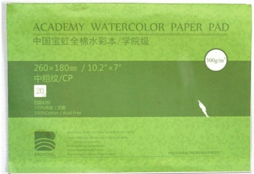 新手可以选用国产的宝虹全棉水彩本,价格便宜,适合平时练习使用。为了方便读者学习,本书使用300克宝虹中粗纹水彩纸。